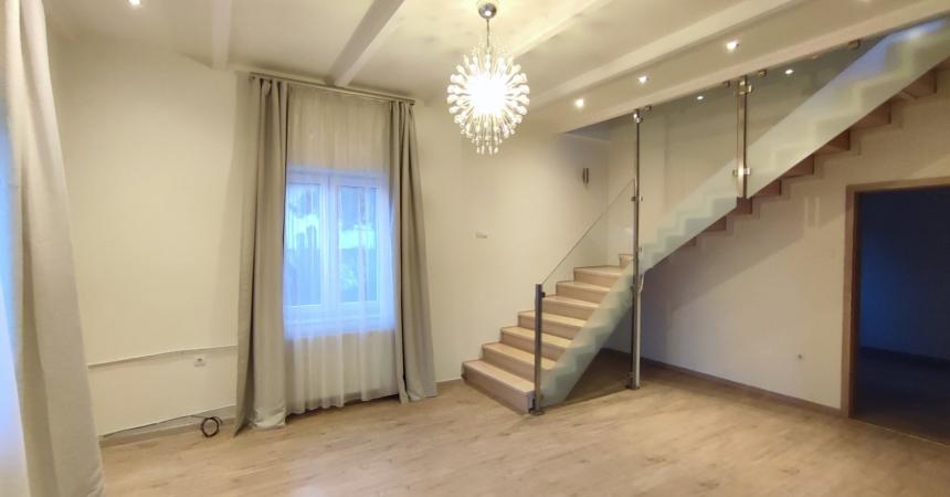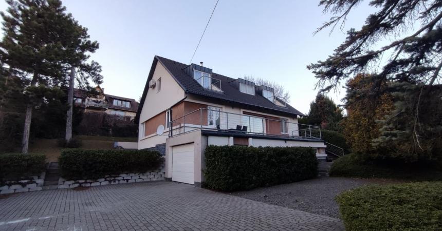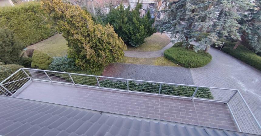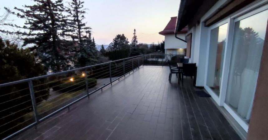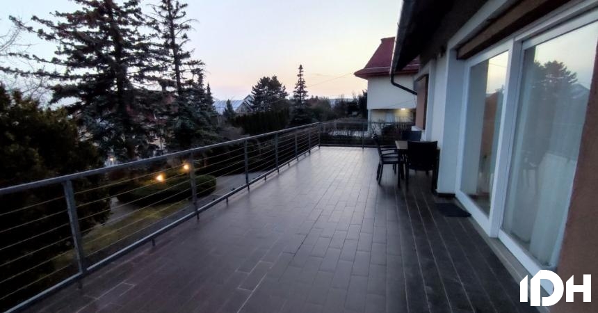 4 hálós családi ház nagy kerttel Szaunával......Látó-hegyen a második kerület  egyik legelegánsabb utcájában kiadó egy 220 m2-es, exkluzívan modern stílusban kialakított, tágas, napfényes, dunai-parlamenti panorámás bútorozatlan ideális családi ház hosszú távra. Található benne a földszinten egy tágas teraszkapcsolatos nappali egyedi tervezésű kandallóval, részben szeparált konyhával és  étkezővel, 1 hálószoba,   olasz dizájn fürdőszoba káddal, dupla mosdóval és mosó és szárítógéppel, külön vendég toalett, tárolószoba. A felső szinten további panorámás 3 hálószoba ( kettő szoba erkéllyel) sok beépített szekrény a folyosón , és egy tágas zuhanyzós fürdőszoba van. A hátsó kertben kültéri finn szauna és egy kis tároló házikó található. További extrák:  riasztó, elektromos kapu, garázs 2 autó részére + kültéri parkoló, 1500 m2-es gondozott díszkert, automata öntözőrendszer .