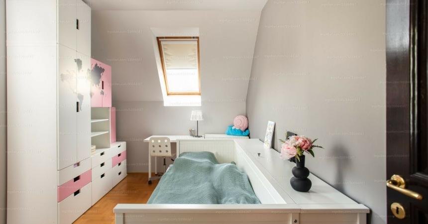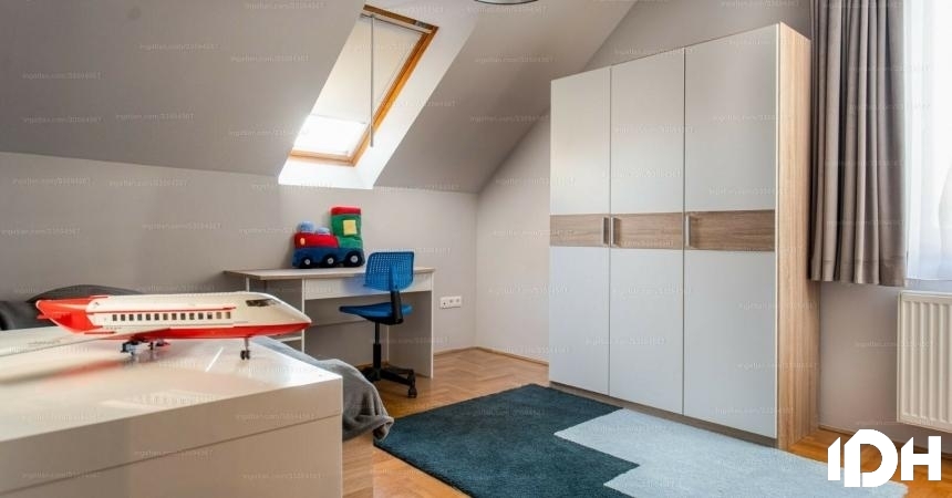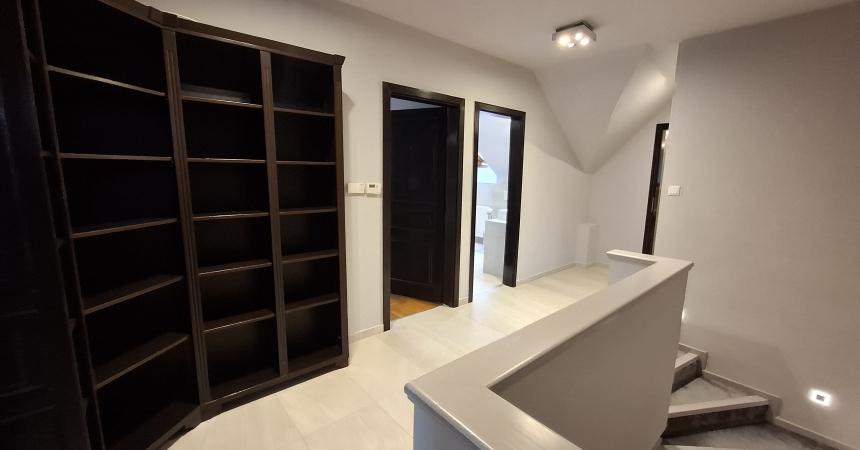Az emeleten található négy szoba, egy erkélyes szülői hálószoba, egy impozáns fürdőszoba WC-vel és egy önálló WC.