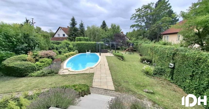 A családi ház kertkapcsolatos. 8*4m-es változó mélységű medence, illetve egy igazi játszótér homokozóval, hintával, dupla mászóvárral. A kertben automata locsolórendszer van.