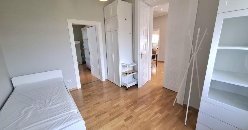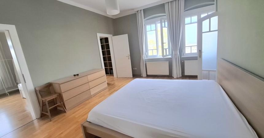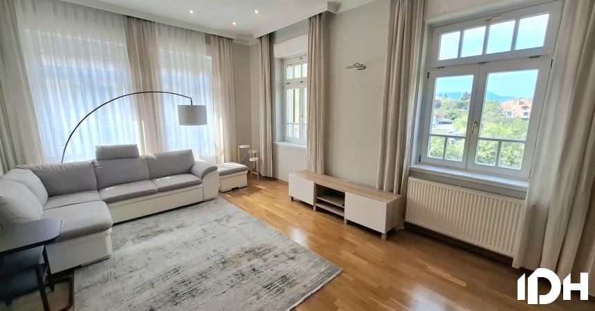 Egy 100 nm-es második emeleti ( lift nincs) csendes panorámás lakás kiadó bútorozva vagy igény szerint bútor nélkül a Vár alatt a Hunfalvy utcában egy felújított klasszikus villában. Található benne egy nagyon világos étkezős nappali, felszerelt félig nyitott konyha, 3 hálószoba, 2 fürdőszoba, erkély.