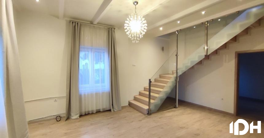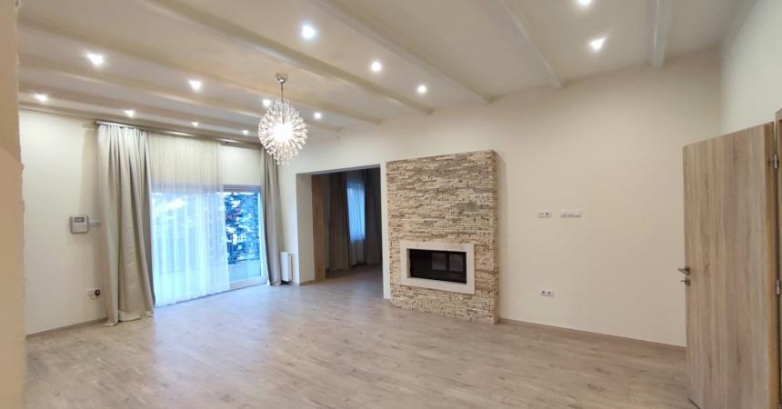 4 hálós családi ház nagy kerttel Szaunával......Látó-hegyen a második kerület  egyik legelegánsabb utcájában kiadó egy 220 m2-es, exkluzívan modern stílusban kialakított, tágas, napfényes, dunai-parlamenti panorámás bútorozatlan ideális családi ház hosszú távra. Található benne a földszinten egy tágas teraszkapcsolatos nappali egyedi tervezésű kandallóval, részben szeparált konyhával és  étkezővel, 1 hálószoba,   olasz dizájn fürdőszoba káddal, dupla mosdóval és mosó és szárítógéppel, külön vendég toalett, tárolószoba. A felső szinten további panorámás 3 hálószoba ( kettő szoba erkéllyel) sok beépített szekrény a folyosón , és egy tágas zuhanyzós fürdőszoba van. A hátsó kertben kültéri finn szauna és egy kis tároló házikó található. További extrák:  riasztó, elektromos kapu, garázs 2 autó részére + kültéri parkoló, 1500 m2-es gondozott díszkert, automata öntözőrendszer .
